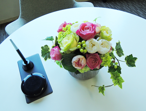 1F 丸テーブルには ナチュラルな雰囲気のお花